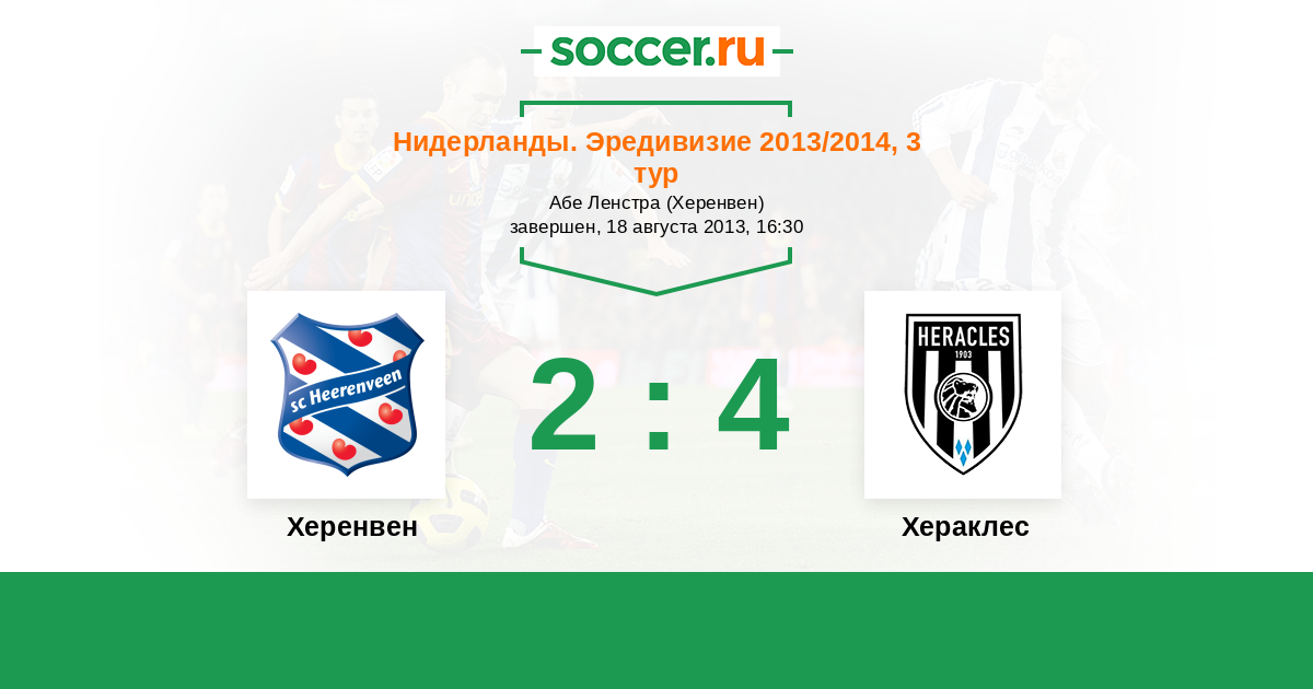 Нидерланды. Эредивизи 28.02.2014 Хераклес Логотип футбольный клуб Хераклес (Алмело) 1:2 Логотип футбольный клуб Херенвен Херенвен
