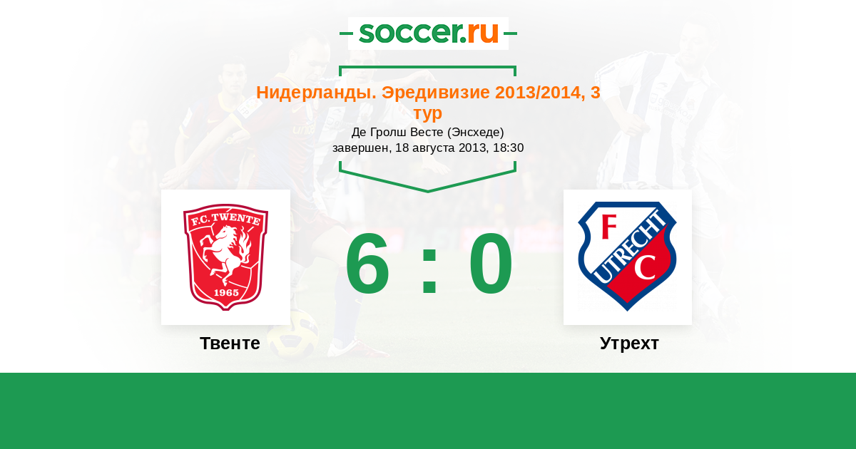 Нидерланды. Эредивизи 28.09.2014 Твенте Логотип футбольный клуб Твенте (Энсхеде) 3:1 Логотип футбольный клуб Утрехт Утрехт