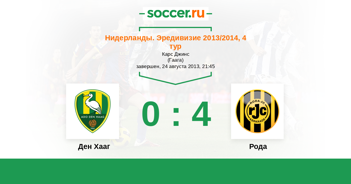 Нидерланды. Эредивизи 15.02.2014 Рода Логотип футбольный клуб Рода (Керкраде) 0:1 Логотип футбольный клуб Ден Хааг (Гаага) Ден Хааг