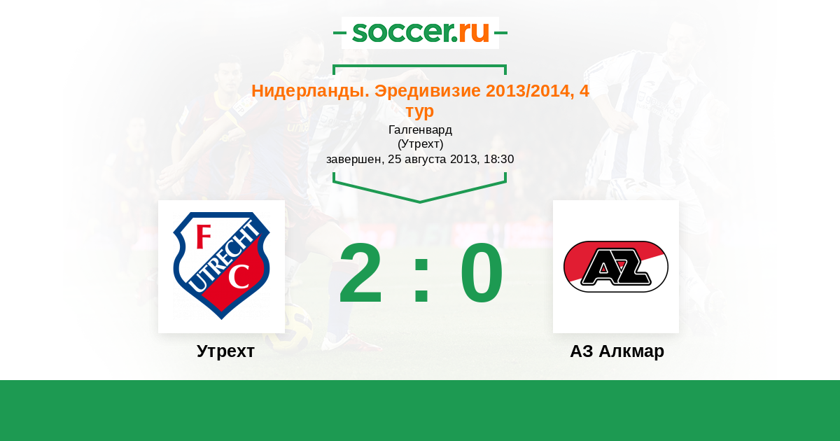 Нидерланды. Эредивизи 02.12.2012 Утрехт Логотип футбольный клуб Утрехт 2:1 Логотип футбольный клуб АЗ Алкмар АЗ Алкмар