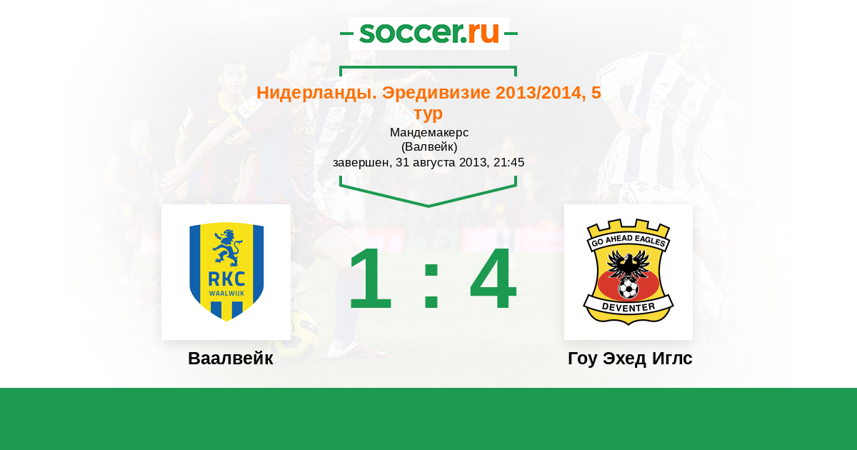 Нидерланды. Эредивизи 05.02.2014 Гоу Эхед Иглс Логотип футбольный клуб Гоу Эхед Иглс (Девентер) 2:2 Логотип футбольный клуб Ваалвейк (Валвейк) Ваалвейк