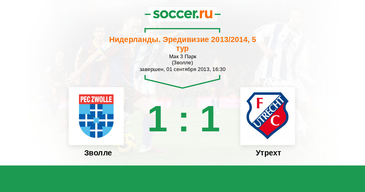 Нидерланды. Эредивизи 25.08.2012 Утрехт Логотип футбольный клуб Утрехт 1:1 Логотип футбольный клуб Зволле Зволле
