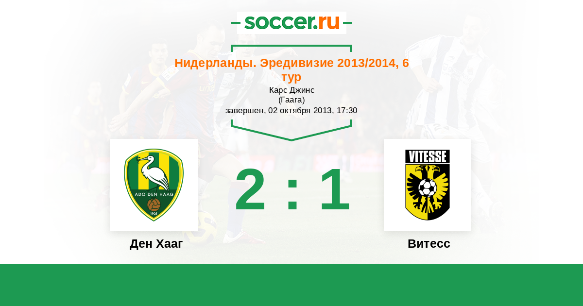 Нидерланды. Эредивизи 07.02.2014 Витесс Логотип футбольный клуб Витесс (Арнем) 0:0 Логотип футбольный клуб Ден Хааг (Гаага) Ден Хааг