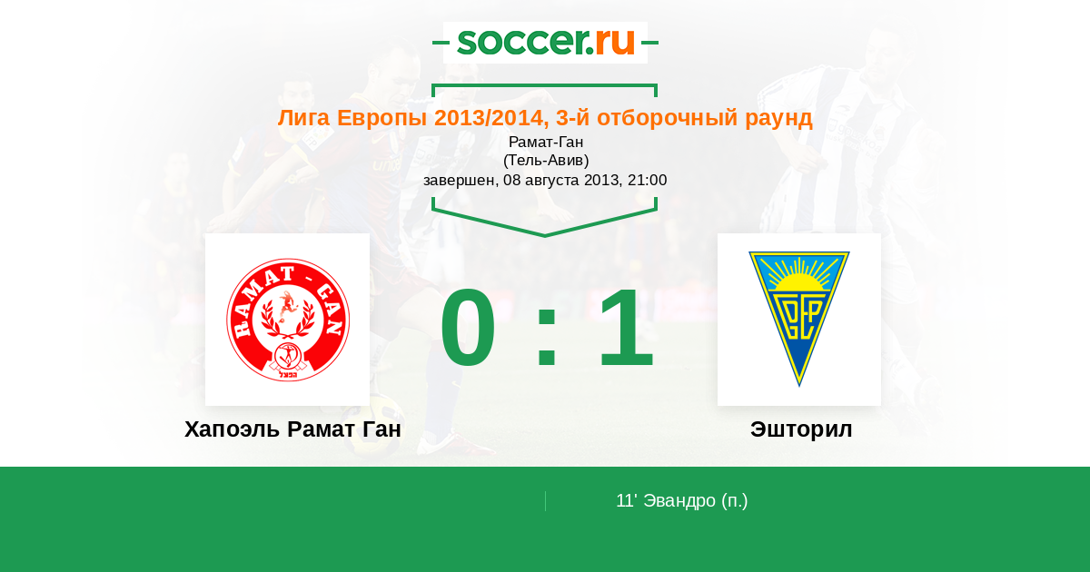 Протокол матча Хапоэль Рамат Ган против Эшторил