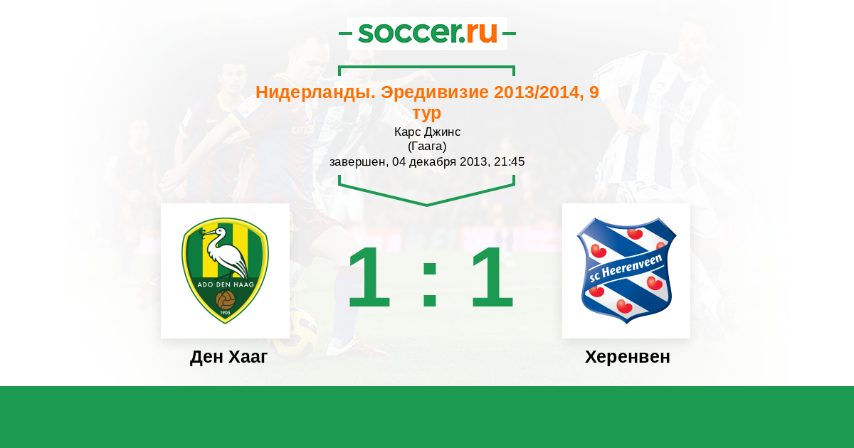 Нидерланды. Эредивизи 19.12.2014 Херенвен Логотип футбольный клуб Херенвен 0:0 Логотип футбольный клуб Ден Хааг (Гаага) Ден Хааг