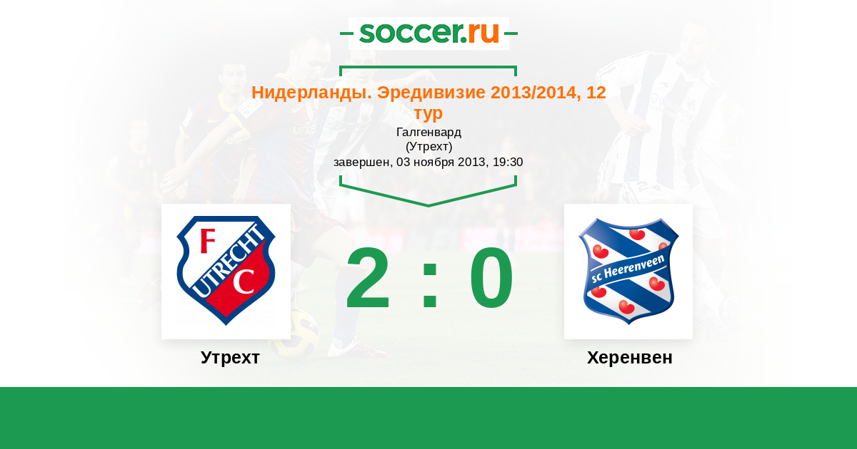 Нидерланды. Эредивизи 16.12.2012 Утрехт Логотип футбольный клуб Утрехт 3:1 Логотип футбольный клуб Херенвен Херенвен