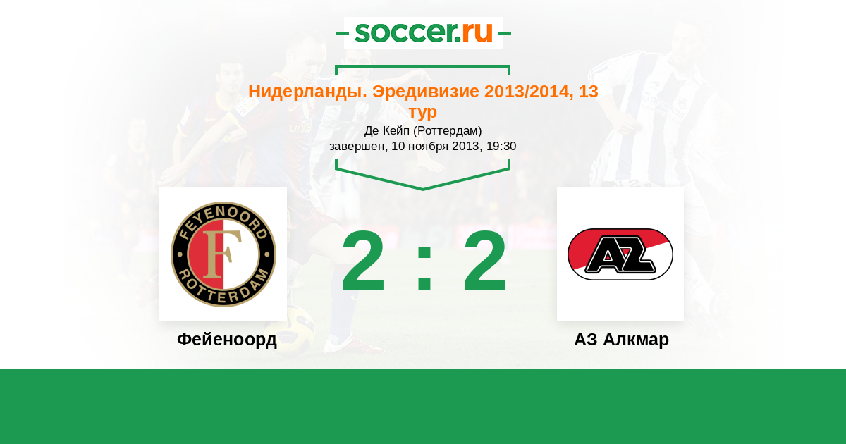 Нидерланды. Эредивизи 14.12.2014 Фейеноорд Логотип футбольный клуб Фейеноорд (Роттердам) 2:2 Логотип футбольный клуб АЗ Алкмар АЗ Алкмар