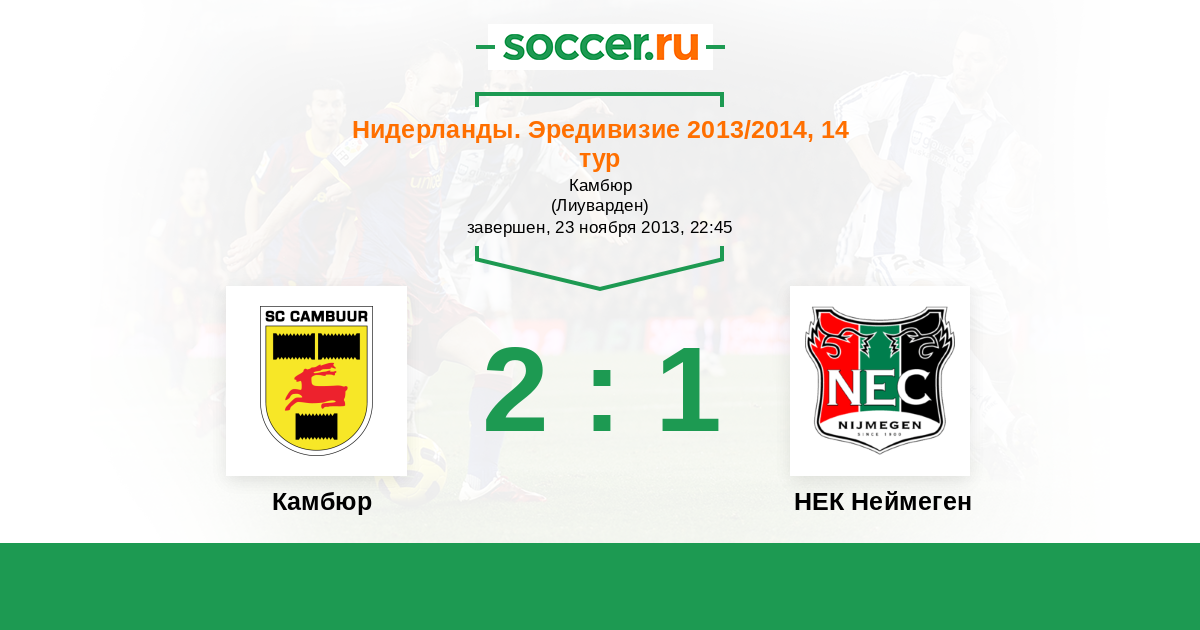 Нидерланды. Эредивизи 05.04.2014 НЕК Неймеген Логотип футбольный клуб НЕК Неймеген 1:1 Логотип футбольный клуб Камбюр (Лиуварден) Камбюр