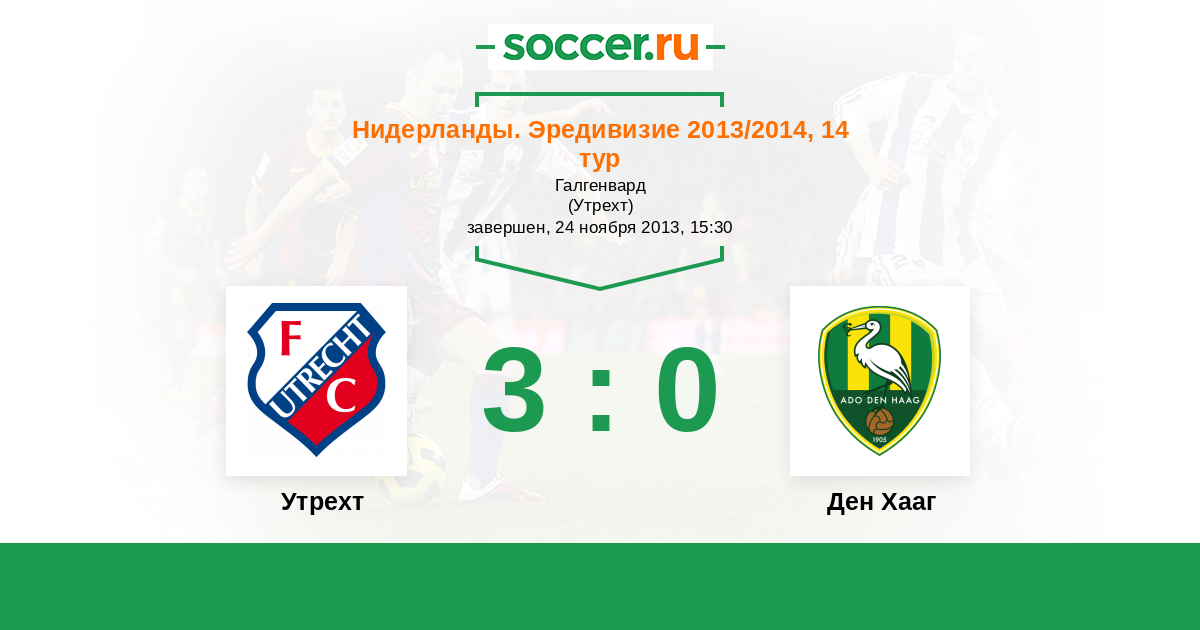 Нидерланды. Эредивизи 14.09.2014 Утрехт Логотип футбольный клуб Утрехт 0:0 Логотип футбольный клуб Ден Хааг (Гаага) Ден Хааг