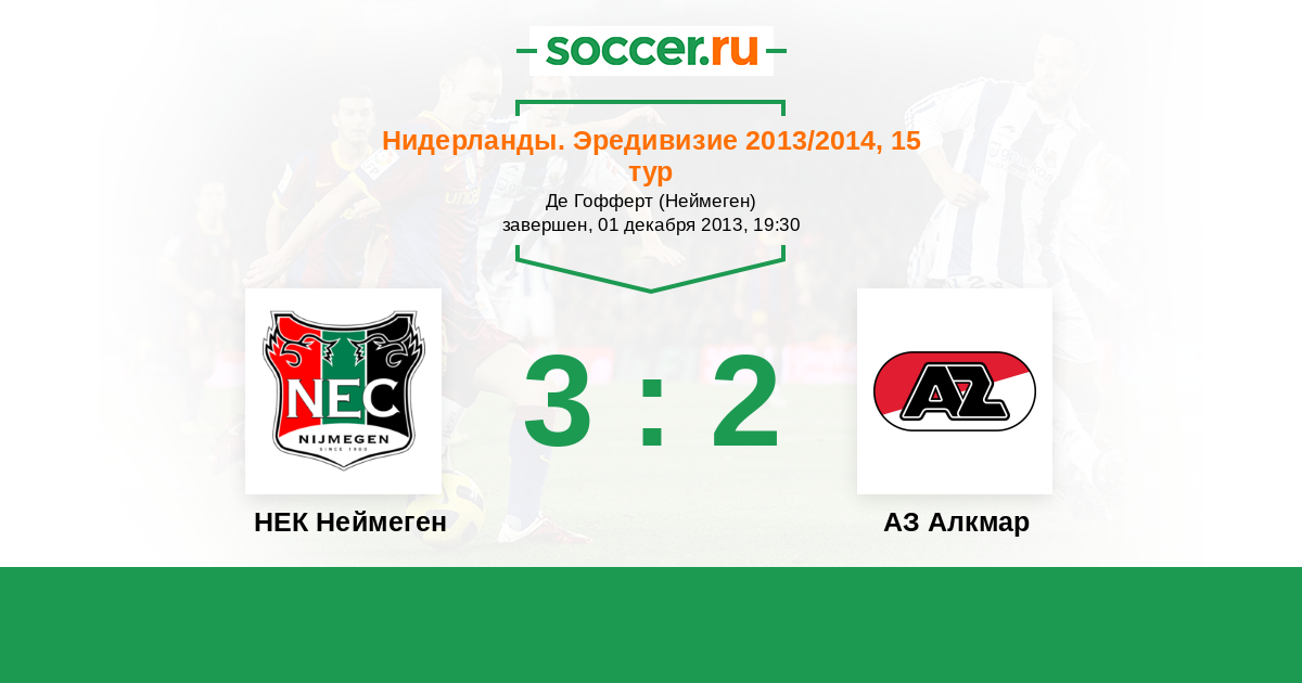 Нидерланды. Эредивизи 13.04.2014 АЗ Алкмар Логотип футбольный клуб АЗ Алкмар 1:1 Логотип футбольный клуб НЕК Неймеген НЕК Неймеген