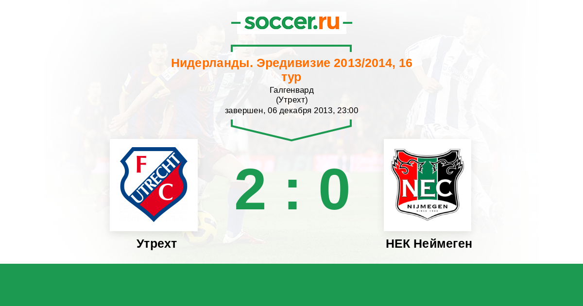 Нидерланды. Кубок 22.01.2014 НЕК Неймеген Логотип футбольный клуб НЕК Неймеген 1:0 Логотип футбольный клуб Утрехт Утрехт