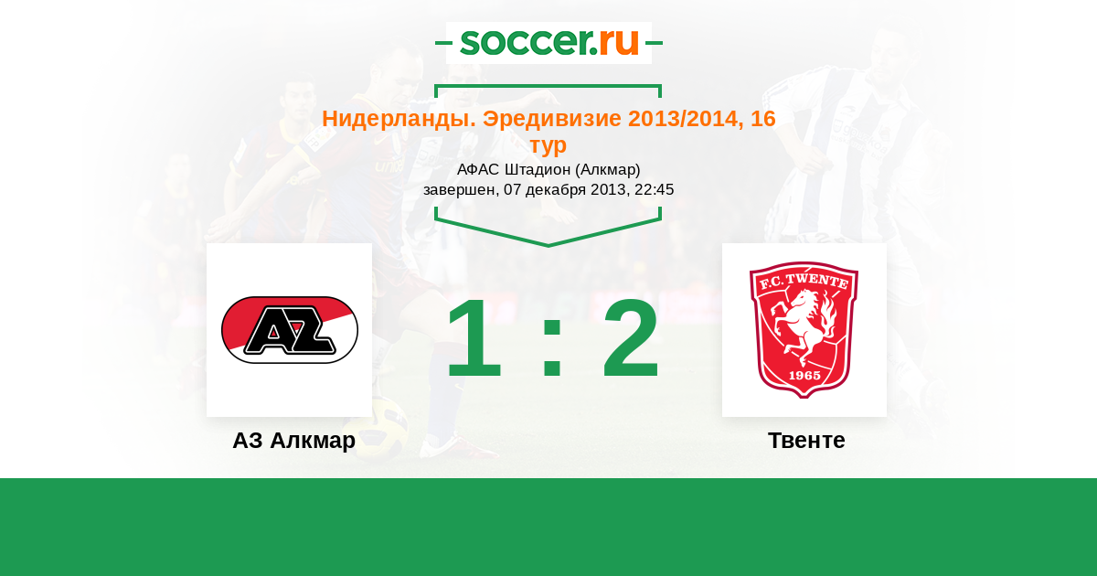 Нидерланды. Эредивизи 16.03.2014 Твенте Логотип футбольный клуб Твенте (Энсхеде) 2:1 Логотип футбольный клуб АЗ Алкмар АЗ Алкмар