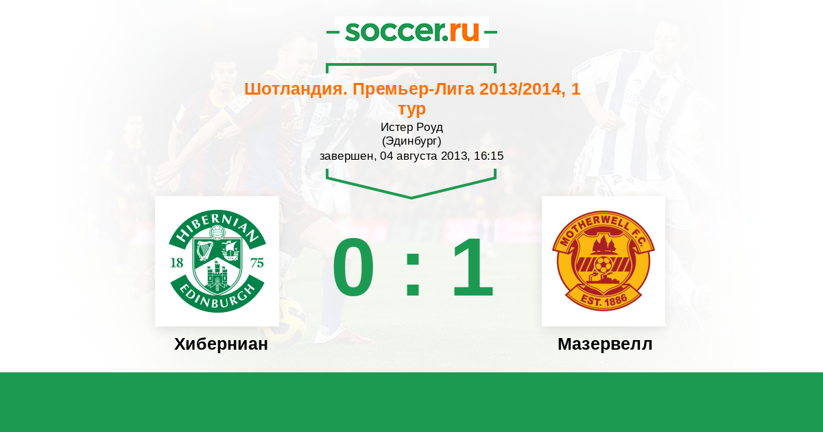 Шотландия. Премьер-Лига 15.12.2012 Хиберниан Логотип футбольный клуб Хиберниан (Эдинбург) 2:3 Логотип футбольный клуб Мазервелл Мазервелл
