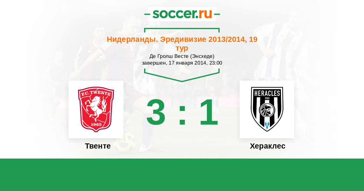 Нидерланды. Эредивизи 21.09.2013 Хераклес Логотип футбольный клуб Хераклес (Алмело) 0:3 Логотип футбольный клуб Твенте (Энсхеде) Твенте