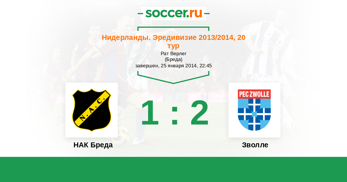 Нидерланды. Эредивизи 17.01.2015 Зволле Логотип футбольный клуб Зволле 4:1 Логотип футбольный клуб НАК Бреда НАК Бреда