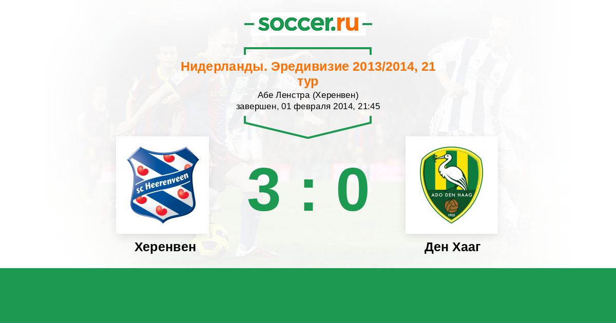 Нидерланды. Эредивизи 17.02.2013 Ден Хааг Логотип футбольный клуб Ден Хааг (Гаага) 2:1 Логотип футбольный клуб Херенвен Херенвен