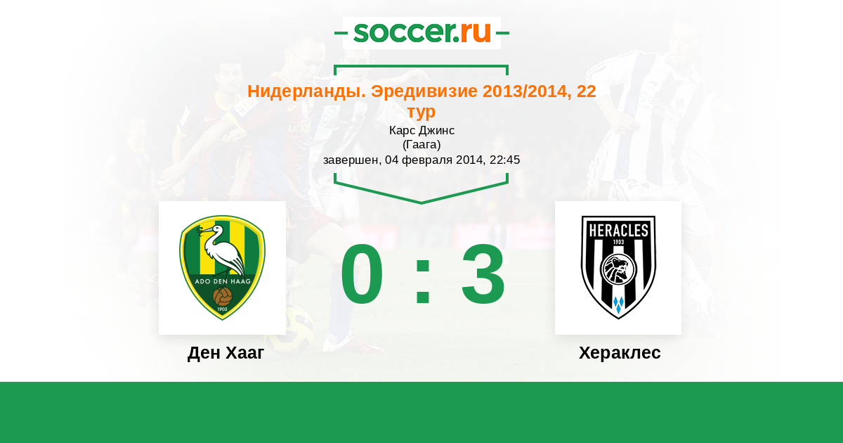 Нидерланды. Эредивизи 10.03.2012 Хераклес Логотип футбольный клуб Хераклес (Алмело) 0:2 Логотип футбольный клуб Ден Хааг (Гаага) Ден Хааг