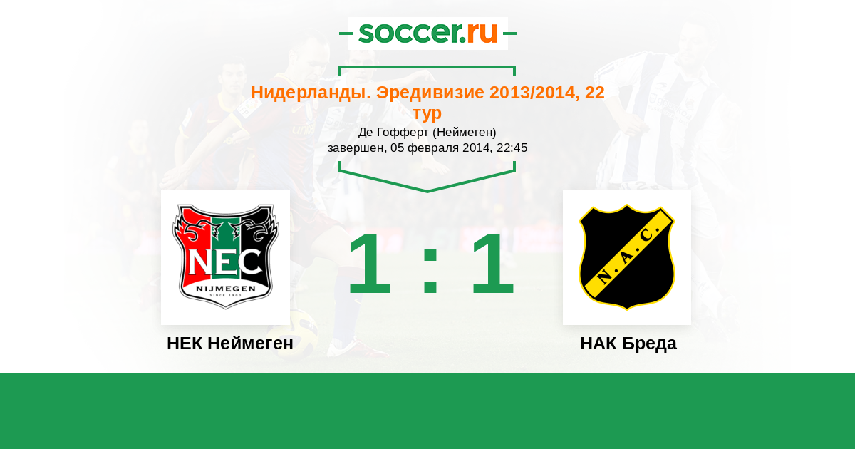 Нидерланды. Эредивизи 02.12.2012 НЕК Неймеген Логотип футбольный клуб НЕК Неймеген 1:1 Логотип футбольный клуб НАК Бреда НАК Бреда