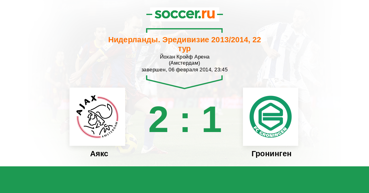 Нидерланды. Эредивизи 16.01.2015 Аякс Логотип футбольный клуб Аякс (Амстердам) 2:0 Логотип футбольный клуб Гронинген Гронинген