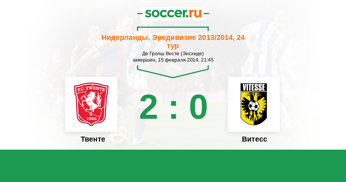 Нидерланды. Эредивизи 22.02.2015 Твенте Логотип футбольный клуб Твенте (Энсхеде) 1:2 Логотип футбольный клуб Витесс (Арнем) Витесс