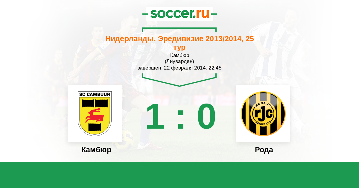 Нидерланды. Эредивизи 09.08.2013 Рода Логотип футбольный клуб Рода (Керкраде) 2:0 Логотип футбольный клуб Камбюр (Лиуварден) Камбюр