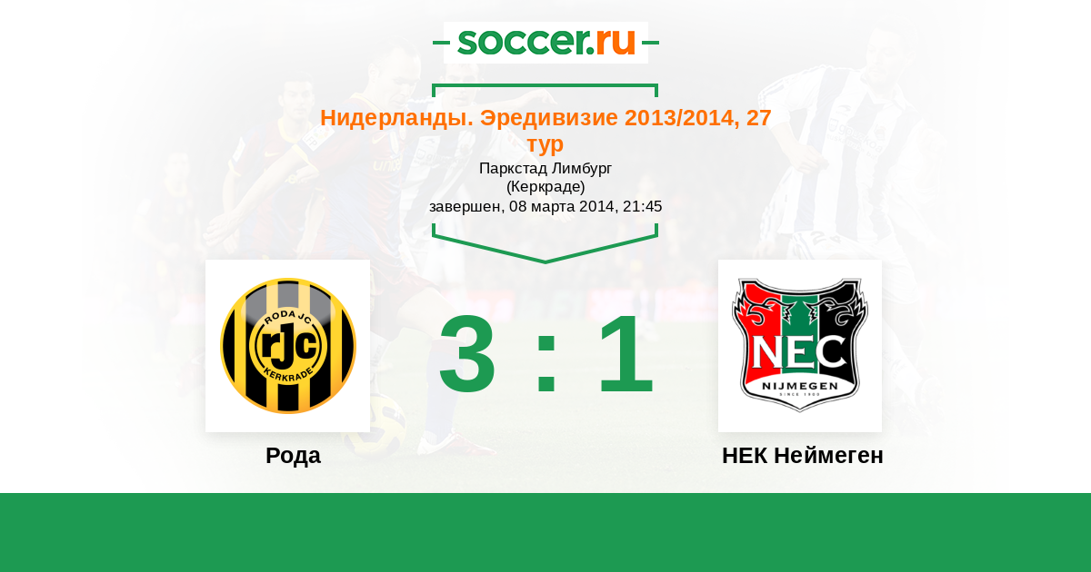 Нидерланды. Эредивизи 11.02.2012 Рода Логотип футбольный клуб Рода (Керкраде) 1:0 Логотип футбольный клуб НЕК Неймеген НЕК Неймеген