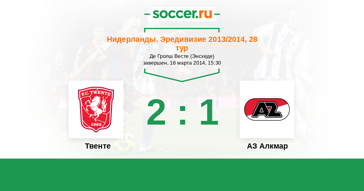 Нидерланды. Эредивизи 20.03.2016 Твенте Логотип футбольный клуб Твенте (Энсхеде) 2:2 Логотип футбольный клуб АЗ Алкмар АЗ Алкмар