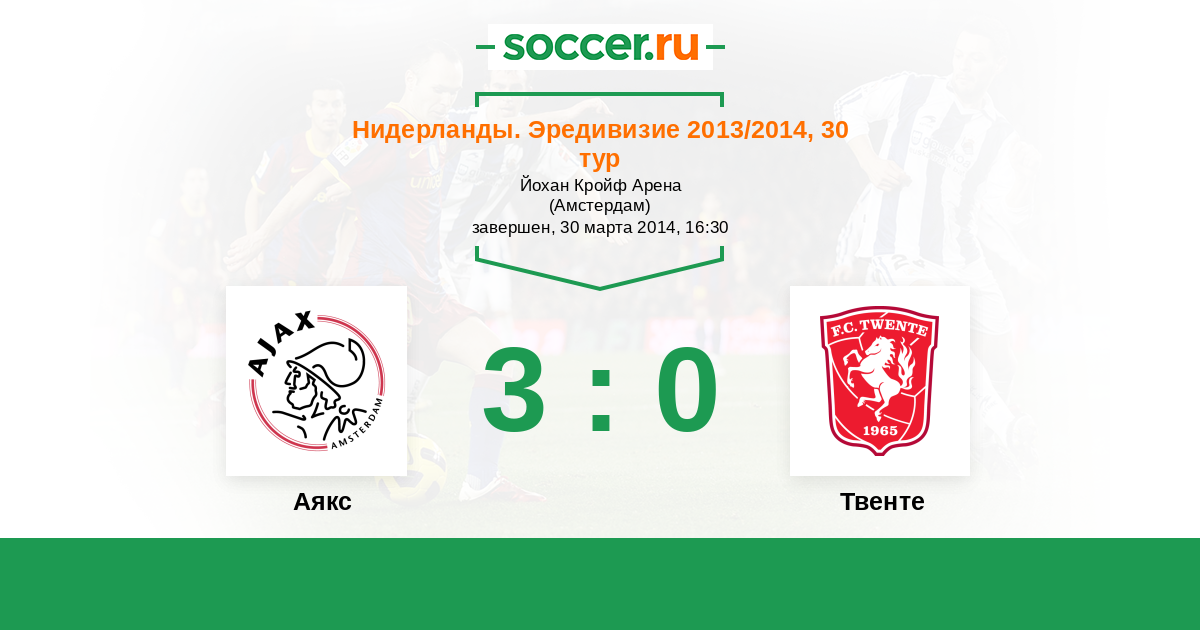 Нидерланды. Эредивизи 02.03.2013 Твенте Логотип футбольный клуб Твенте (Энсхеде) 0:2 Логотип футбольный клуб Аякс (Амстердам) Аякс