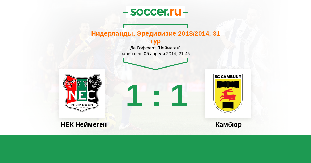 Нидерланды. Эредивизи 23.11.2013 Камбюр Логотип футбольный клуб Камбюр (Лиуварден) 2:1 Логотип футбольный клуб НЕК Неймеген НЕК Неймеген