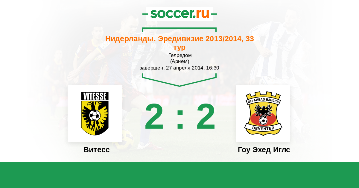 Нидерланды. Эредивизи 29.11.2014 Витесс Логотип футбольный клуб Витесс (Арнем) 2:2 Логотип футбольный клуб Гоу Эхед Иглс (Девентер) Гоу Эхед Иглс