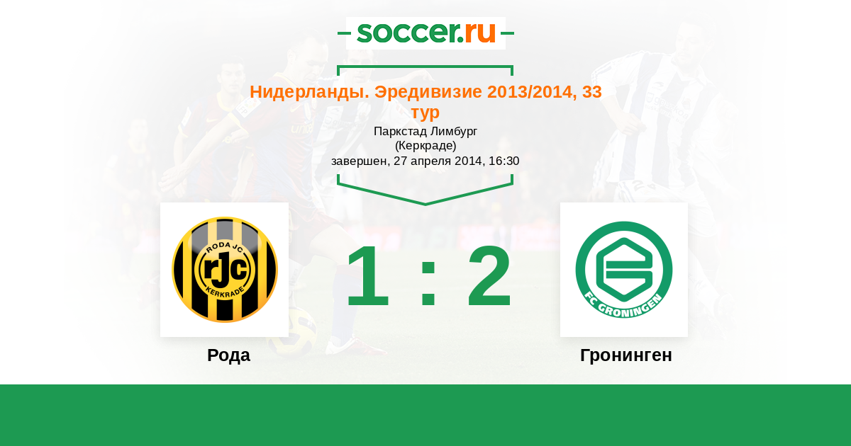 Нидерланды. Эредивизи 03.03.2013 Рода Логотип футбольный клуб Рода (Керкраде) 4:1 Логотип футбольный клуб Гронинген Гронинген