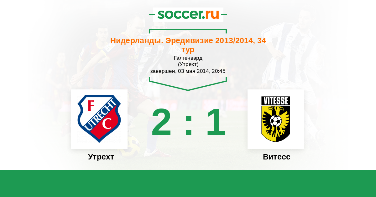 Нидерланды. Эредивизи 01.03.2013 Витесс Логотип футбольный клуб Витесс (Арнем) 2:0 Логотип футбольный клуб Утрехт Утрехт