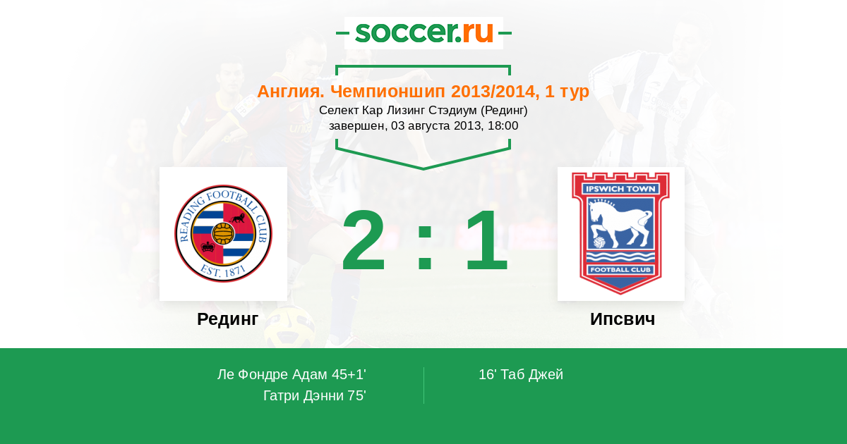 Протокол матча Рединг против Ипсвич