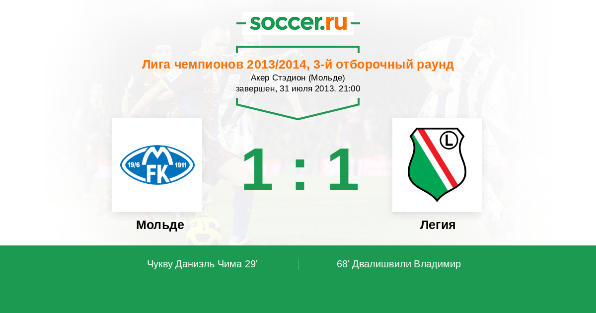 Протокол матча Мольде против Легия