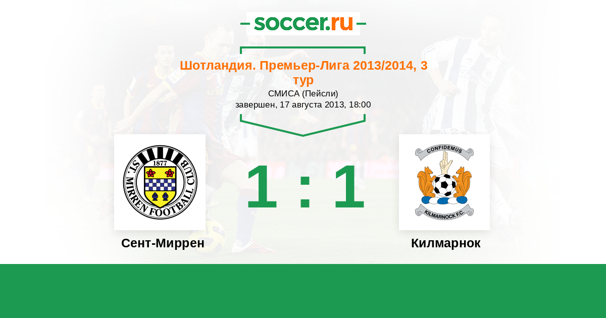 Шотландия. Премьер-Лига 02.01.2013 Сент-Миррен Логотип футбольный клуб Сент-Миррен (Пейсли) 1:1 Логотип футбольный клуб Килмарнок Килмарнок