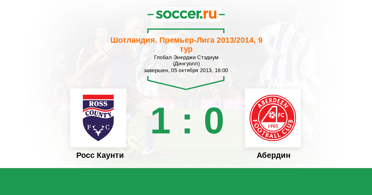 Шотландия. Премьер-Лига 20.09.2014 Абердин Логотип футбольный клуб Абердин 3:0 Логотип футбольный клуб Росс Каунти (Дингволл) Росс Каунти