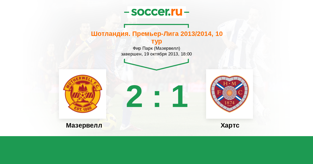 Шотландия. Премьер-Лига 21.10.2012 Хартс Логотип футбольный клуб Хартс (Эдинбург) 1:0 Логотип футбольный клуб Мазервелл Мазервелл