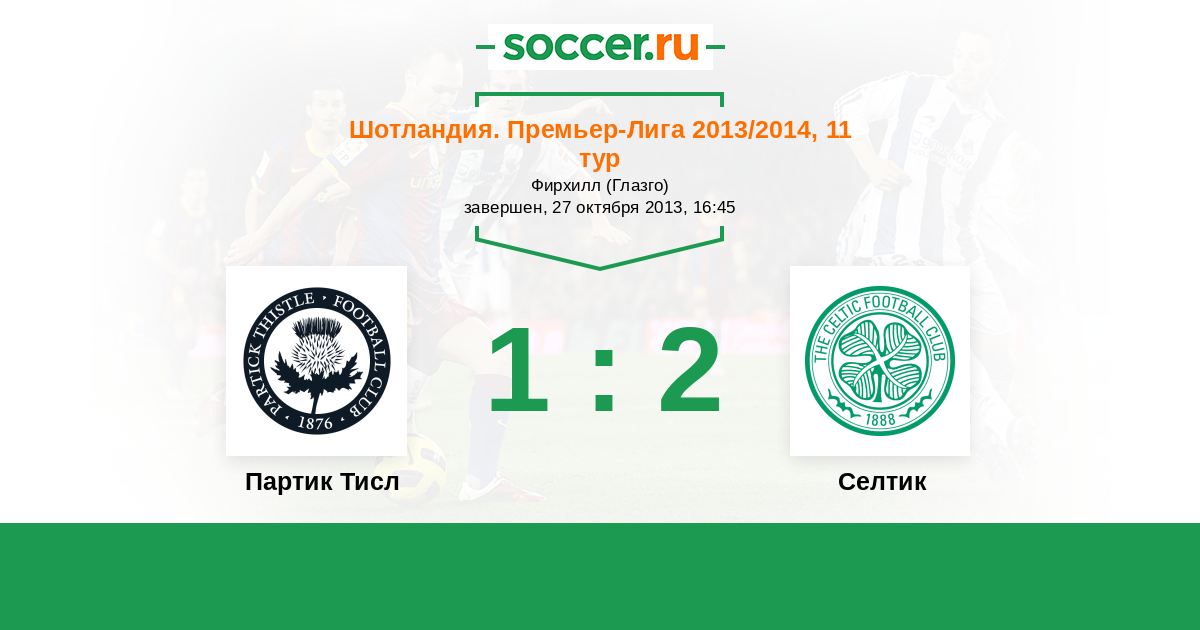 История матча Партик Тисл против Селтик