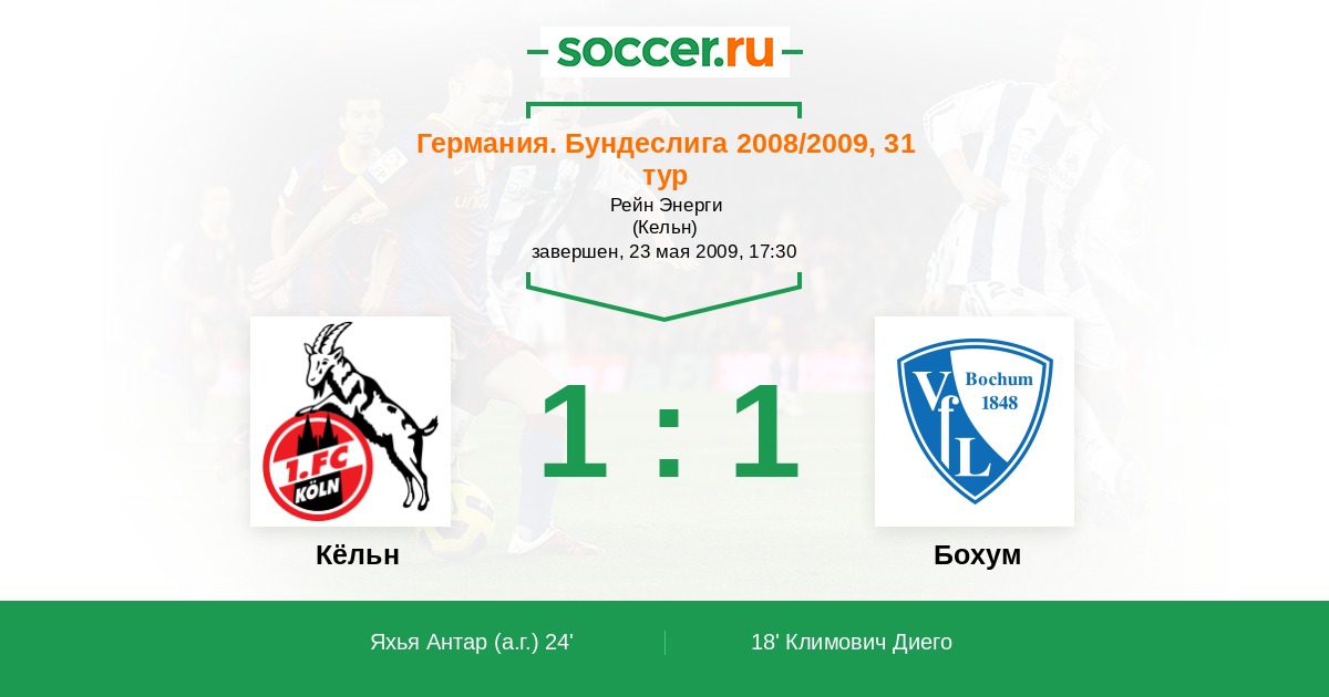 Протокол матча Кёльн против Бохум