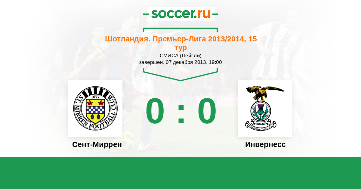 Шотландия. Премьер-Лига 18.10.2014 Сент-Миррен Логотип футбольный клуб Сент-Миррен (Пейсли) 0:1 Логотип футбольный клуб Инвернесс Инвернесс