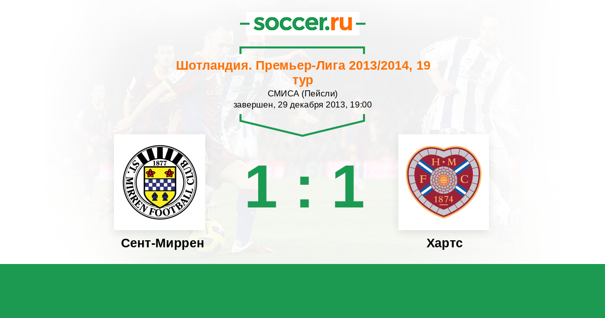 Шотландия. Премьер-Лига 29.01.2014 Хартс Логотип футбольный клуб Хартс (Эдинбург) 2:1 Логотип футбольный клуб Сент-Миррен (Пейсли) Сент-Миррен