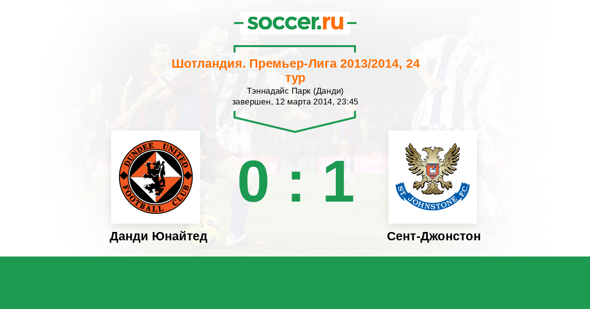 Шотландия. Премьер-Лига 01.04.2013 Сент-Джонстон Логотип футбольный клуб Сент-Джонстон (Перт) 1:1 Логотип футбольный клуб Данди Юнайтед Данди Юнайтед