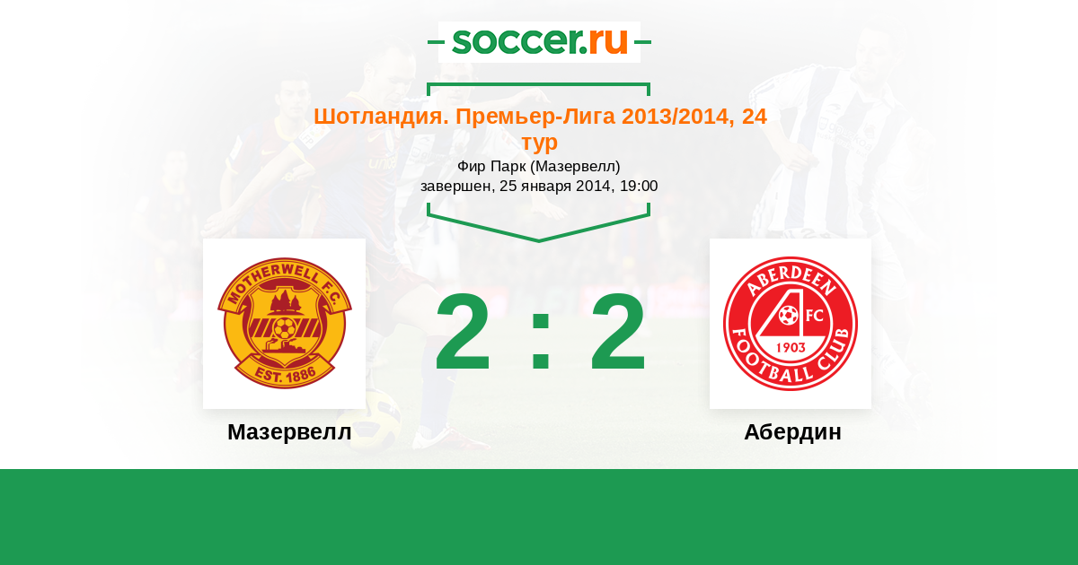 Шотландия. Премьер-Лига 04.01.2015 Мазервелл Логотип футбольный клуб Мазервелл 0:2 Логотип футбольный клуб Абердин Абердин