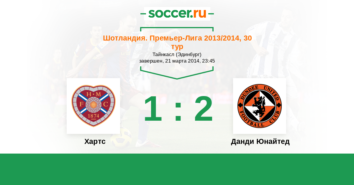 Шотландия. Премьер-Лига 25.02.2012 Хартс Логотип футбольный клуб Хартс (Эдинбург) 0:2 Логотип футбольный клуб Данди Юнайтед Данди Юнайтед
