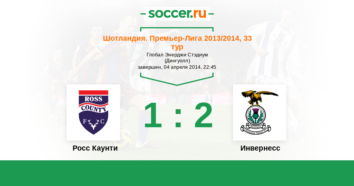 Шотландия. Премьер-Лига 25.02.2014 Росс Каунти Логотип футбольный клуб Росс Каунти (Дингволл) 0:3 Логотип футбольный клуб Инвернесс Инвернесс