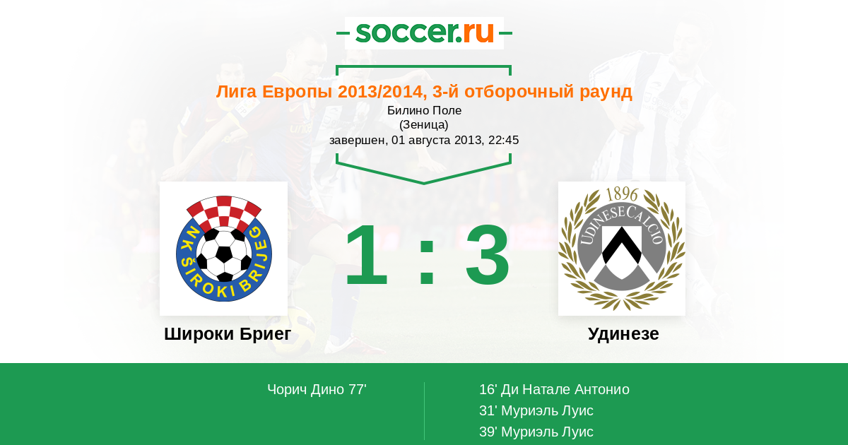 Протокол матча Широки Бриег против Удинезе