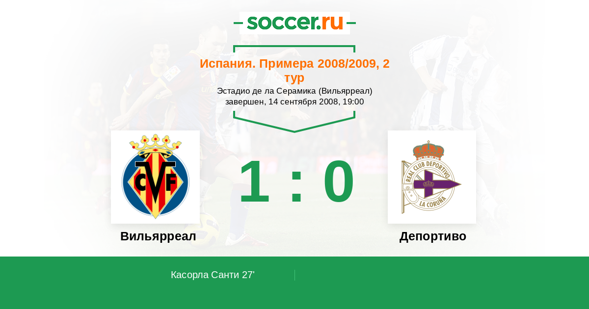 Протокол матча Вильярреал против Депортиво