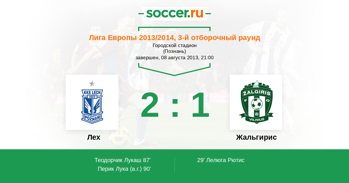 Протокол матча Лех против Жальгирис