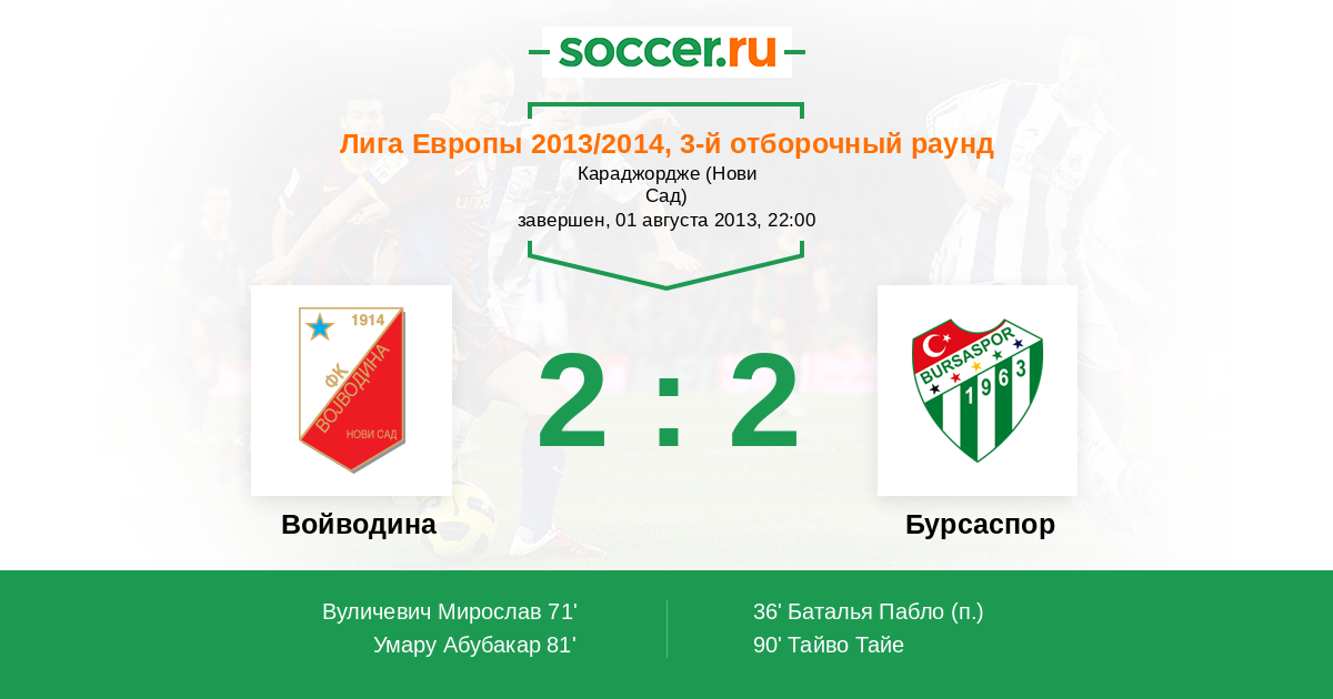 Протокол матча Войводина против Бурсаспор