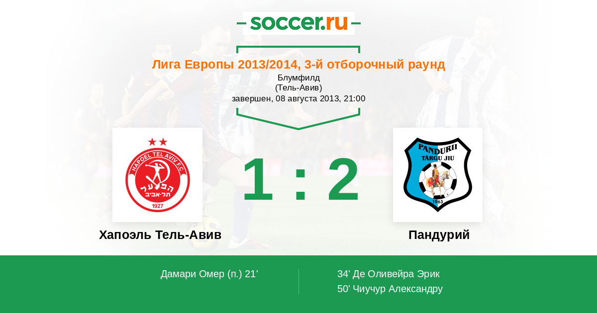 Протокол матча Хапоэль Тель-Авив против Пандурий
